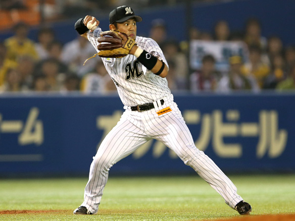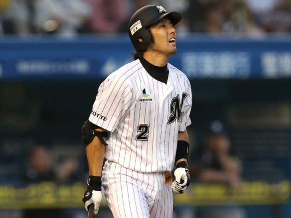 1番 西岡 四球 内角の落ちる球を見送りフォアボールを選ぶ |