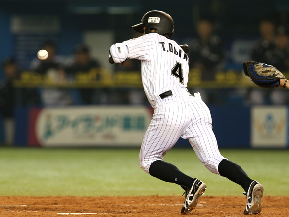 絶妙な犠打で走者を進める荻野貴!