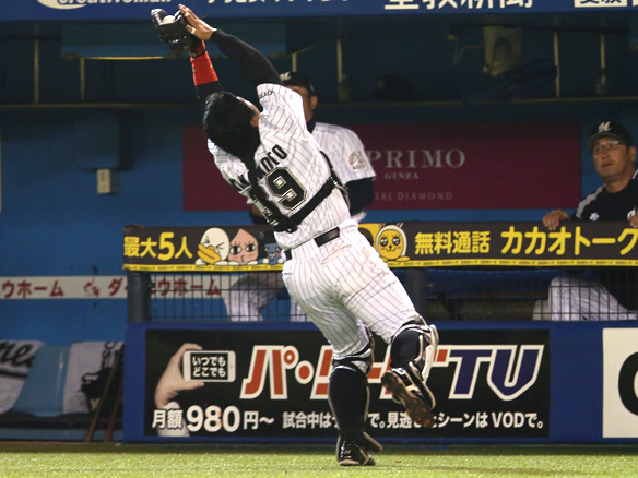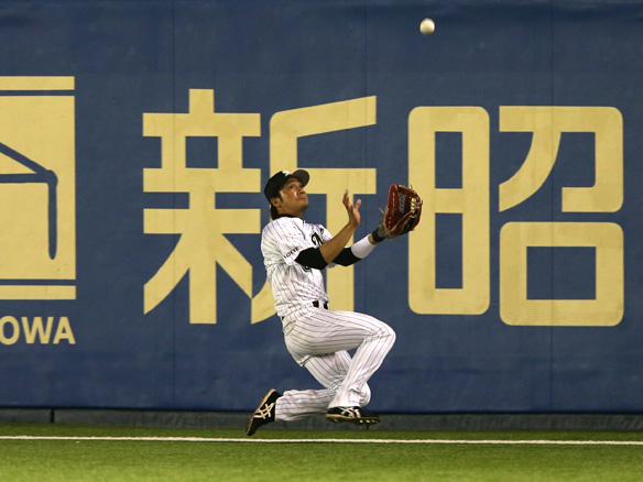 伊志嶺は鳥谷の放った右中間への打球を好捕!