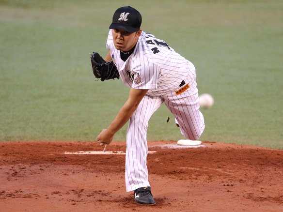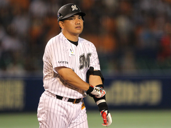 7番 ラヘア 四球 低めのストレートを見送りフォアボール。ロッテ、満塁のピンチをまねく 満塁 |