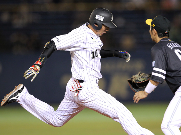 2番 角中 一ゴ失 中村(一)の後逸により出塁する ロ3-0ソ 2,3塁 ![]() 2