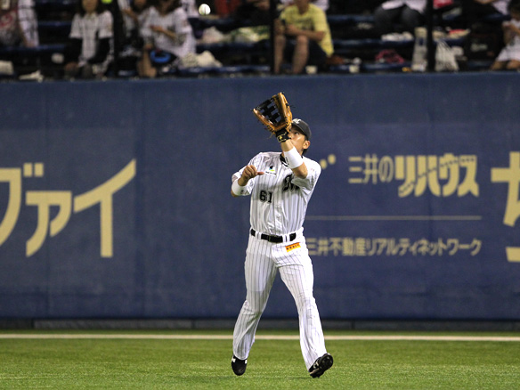 投手 攝津 4番 今江 左飛 内角のカーブを打つもレフトフライ 1アウト |