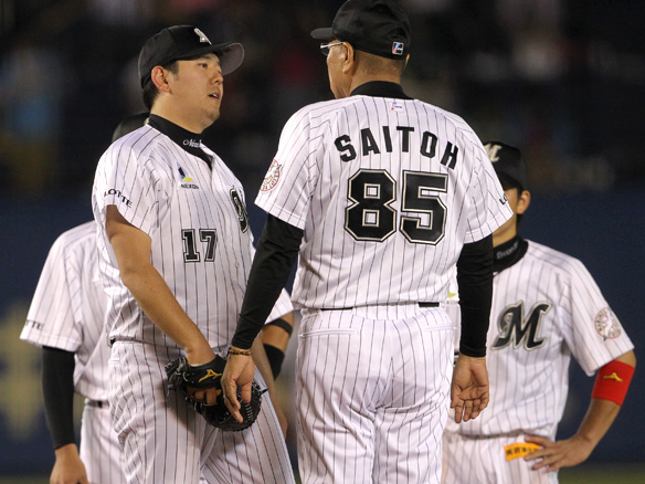 投手 藤岡 守備変更:角中ライト→レフト 守備変更:清田→ライト |