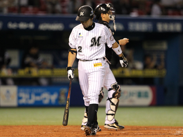 8番 里崎 二ゴ 外角の真っ直ぐを打つもセカンドゴロ 3アウトチェンジ |