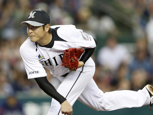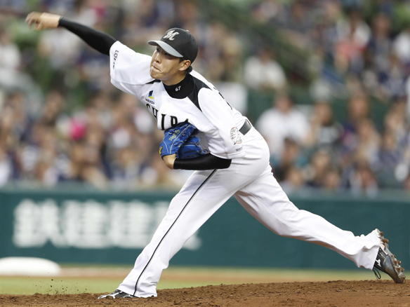 投手 服部 3番 栗山 四球 一度もバットを振ることなくフォアボールを選ぶ 1,2塁 |