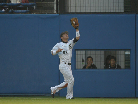 角中はライン際のフライを丁寧にキャッチ