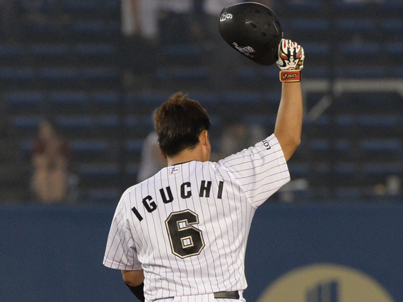 通算300二塁打を放った井口がファンの声援に応える