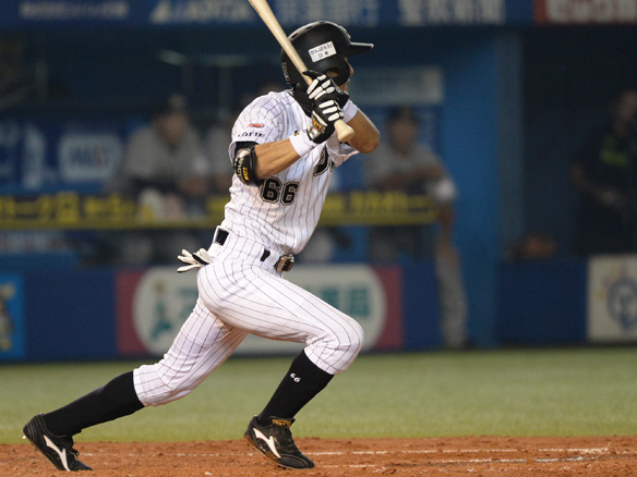 5番 バルディリス 左安 レフトへのヒットを放つ 1塁 |