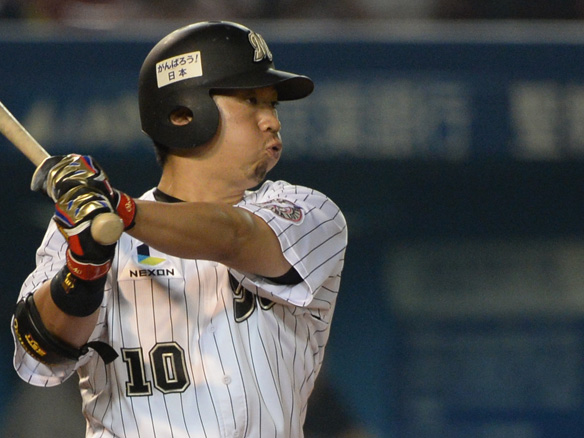 投手 唐川 4番 李大浩 三ゴ 外角の変化球を打つもサードゴロ 1アウト |