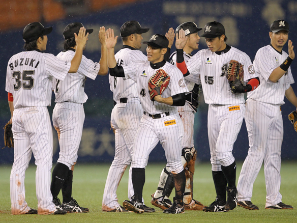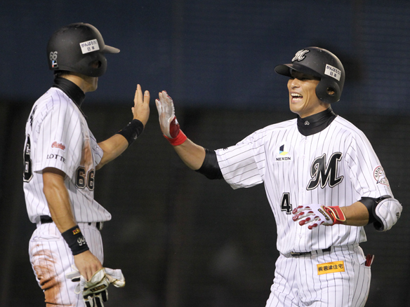 雨の中、応援に来てくれているマリーンズファンへ捧げる一発。