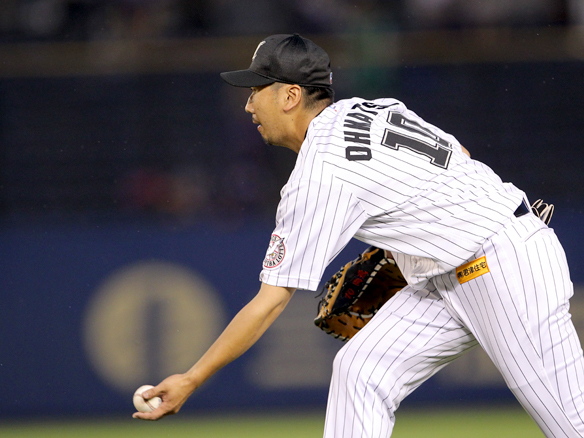 投手 嘉弥真 投手交代:嘉弥真→森福 守備交代:セカンド金子 |