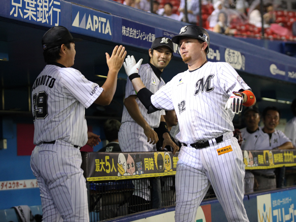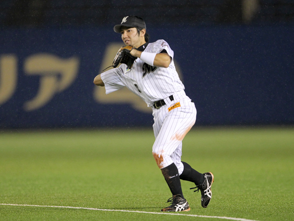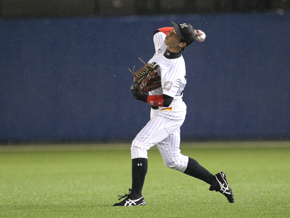8番 ラヘア 左邪飛 ファウルフライを荻野貴(左)が捕球してバッターアウト 1アウト |