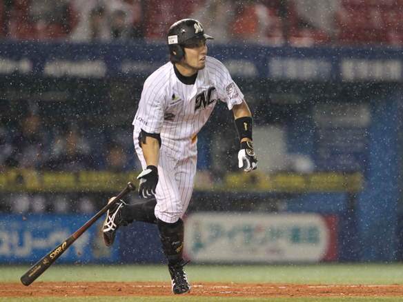 3番 角中 二ゴ失 福元(二)の後逸により出塁する |
