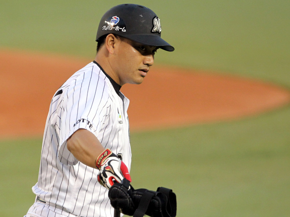 投手 屋宜 2番 角中 四球 一度もバットを振ることなくストレートのフォアボールを選ぶ 1塁 |