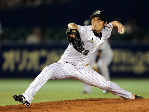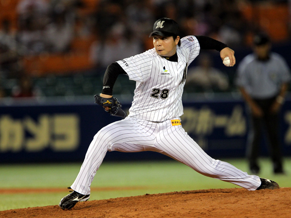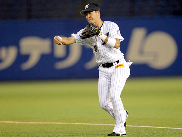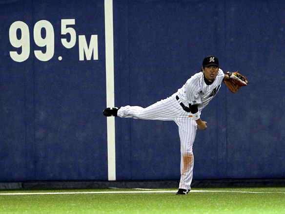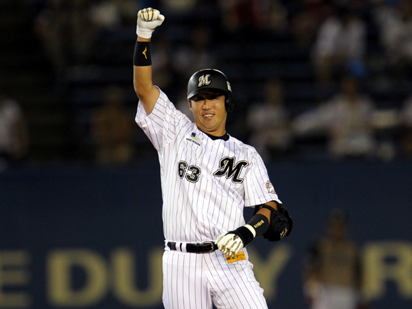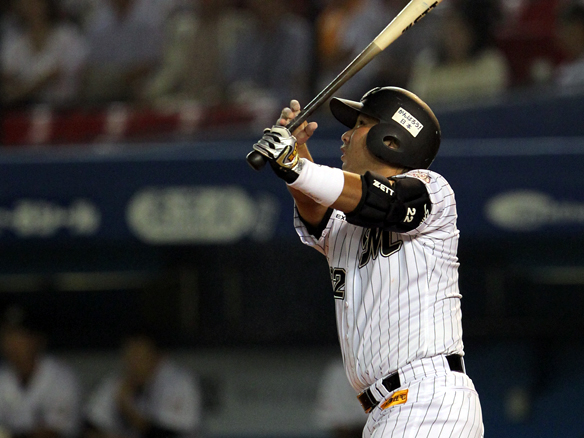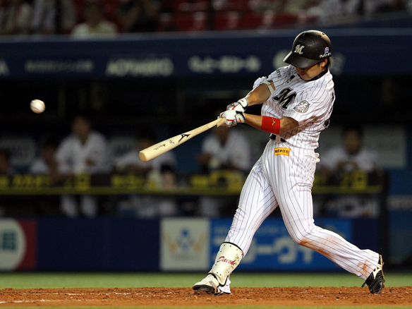 6番 里崎 中犠飛 ランナーフルベースの2-1からセンターへの犠牲フライを放つ ロ2-0日 2アウト2,3塁 ![]() 2