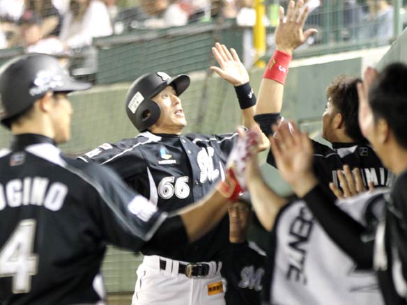 ロッテ先制! オ0-1ロ 1アウト1塁 |