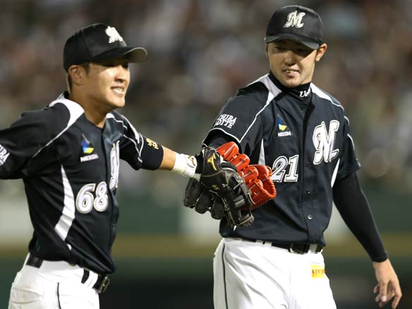 5番 バルディリス 捕邪飛 ファウルフライを里崎(捕)が捕球してバッターアウト 2アウト |