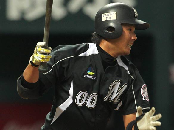 6番 里崎 中飛 外角のスライダーを打つもセンターフライ 2アウト3塁 |