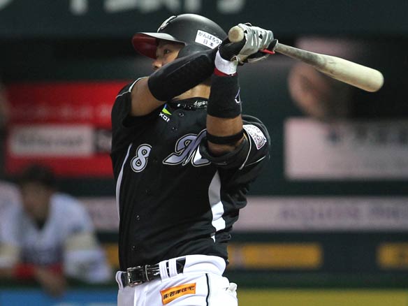 投手 パディーヤ 4番 今江 右安 ライトへのヒットで出塁 1塁 |