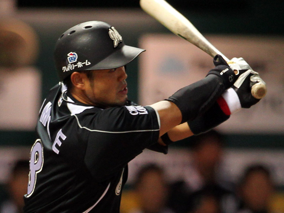 5番 角中 左安 レフトへのヒットで出塁 1,2塁 |