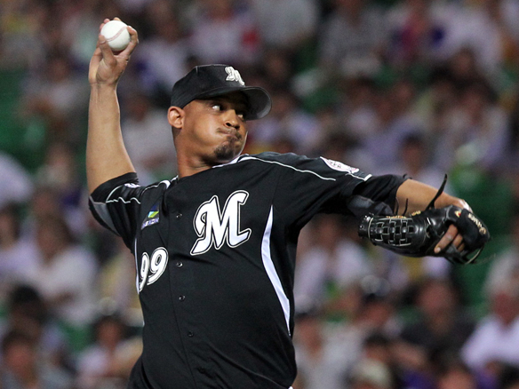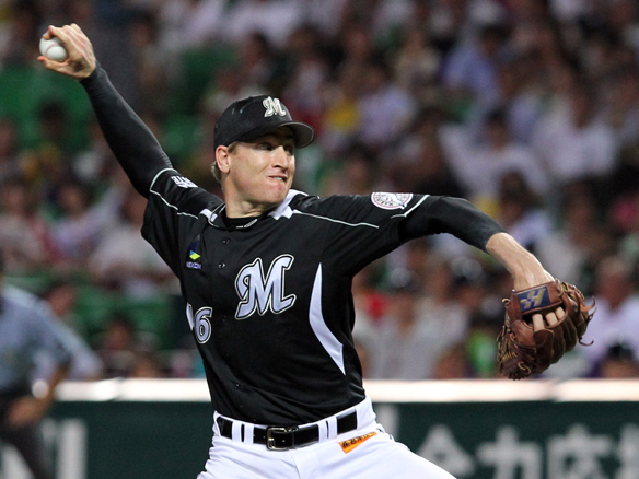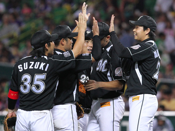 投手 大場 6番 里崎 空三振 内角のフォークボールに空振り三振でバッターアウト 1アウト |
