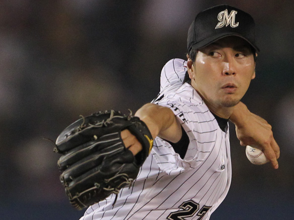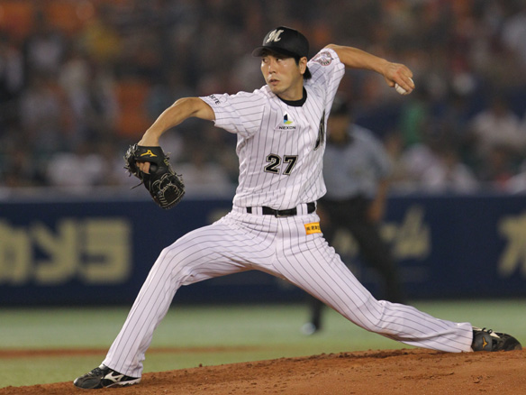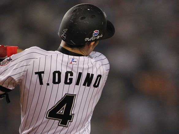 投手 金刃 3番 角中 左中二 レフトへのツーベース 2塁 |