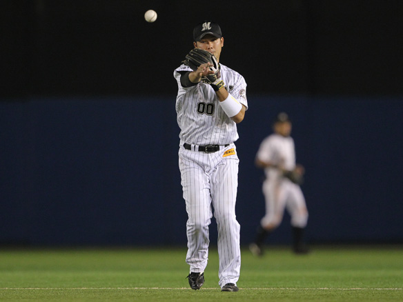 8番 里崎 中越二 フェンス直撃の二塁打を放つ 2塁 |