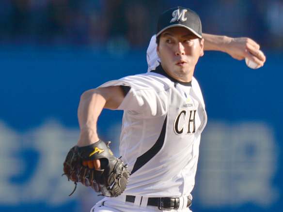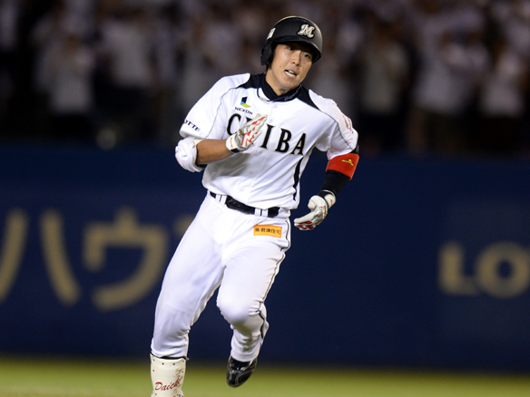 8番 里崎 左安 ランナー1,3塁の1-1からレフトへのタイムリーヒット ロ2-0オ 1,2塁 ![]() 2