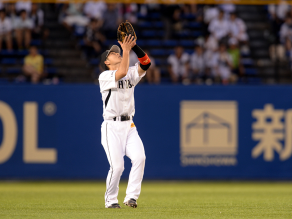 7番 深江 左邪飛 ファウルフライを荻野貴(左)がつかんでバッターアウト 2アウト |