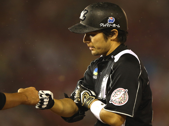 9番 G.G.佐藤 右安 ライトへのヒットで出塁 1塁 |