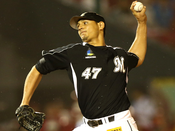 投手 服部 ピッチャー服部に代わってレデズマがマウンドにあがる |