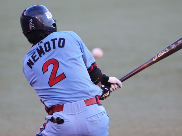 1番 根元 二ゴ 内角のスライダーを打つもセカンドゴロ 2アウト |