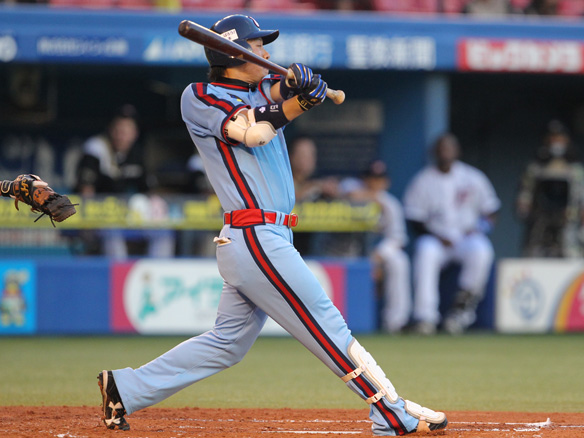 6番 G.G.佐藤 四球 一度もバットを振ることなくフォアボールを選ぶ 1塁 |