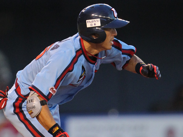 2番 今浪 右安 ライトへのヒットを放つ 1塁 |