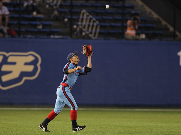 3番 陽 左翼二 ランナー1,2塁の1-0からレフトへタイムリーツーベース! ロ0-3日 2,3塁 ![]() 0