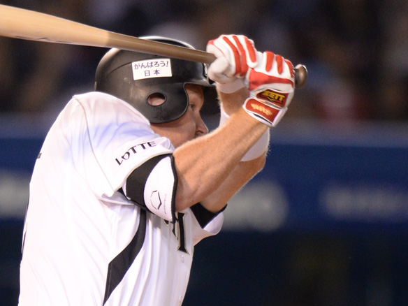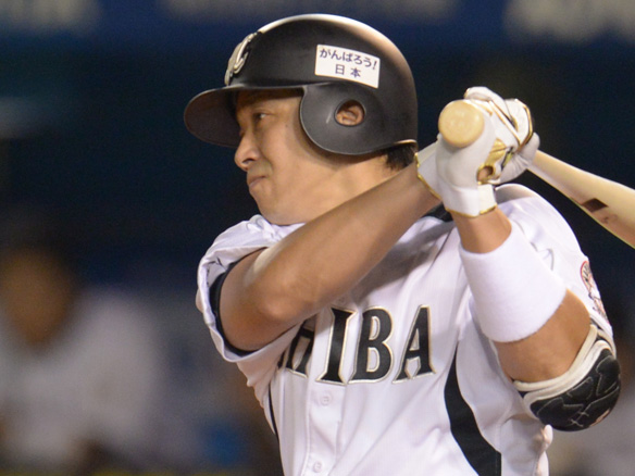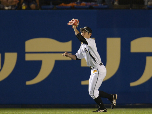 投手 野上 5番 サブロー 左安 レフトへのヒットを放つ 1塁 |