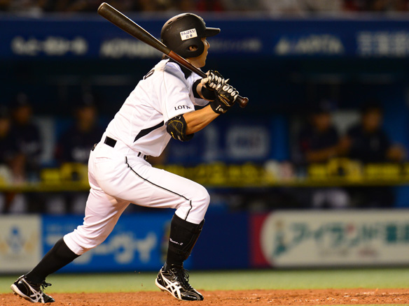 1番 角中 右中三 フェンス直撃の三塁打を放つ 3塁 |