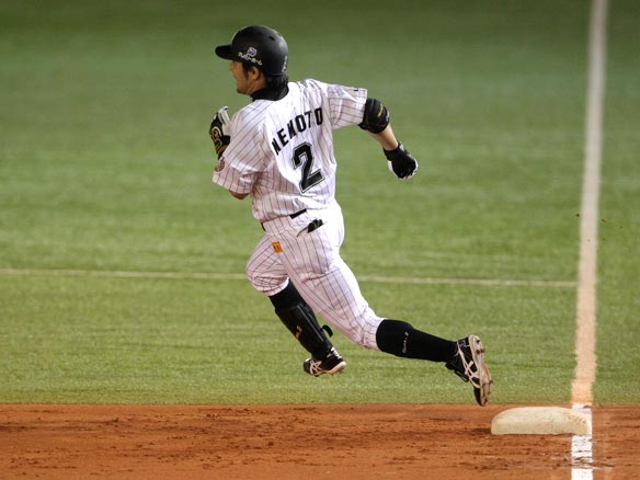 2番 根元 左中二 センターへの二塁打 2塁 |