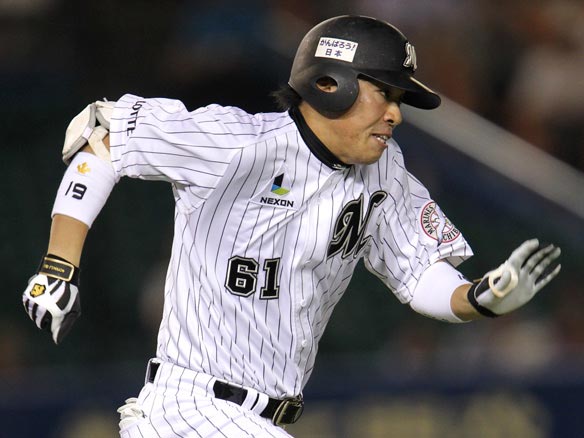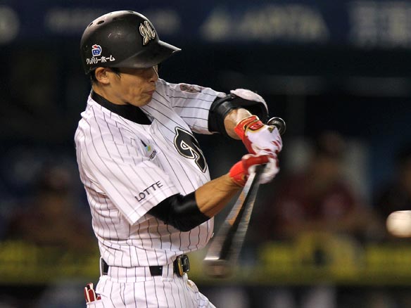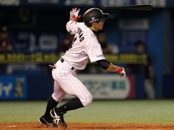1番 角中 三安 叩きつける打球で内野安打 1塁 |