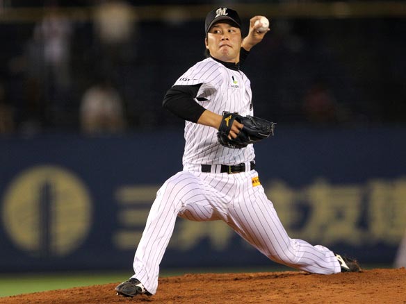8番 里崎 左飛 内角のストレートを打つもレフトフライ 1アウト |