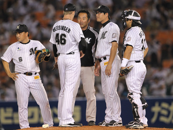 8番 里崎 二ゴ 外角のチェンジアップを打つもセカンドゴロ 2アウト2塁 |