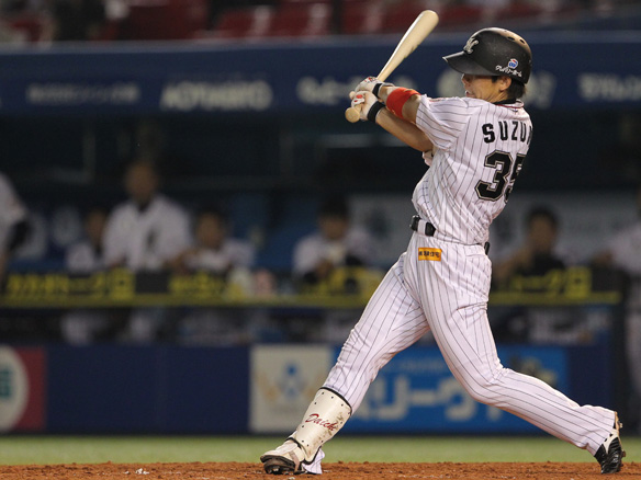 投手 金刃 5番 角中 左安 レフトへのヒットを放つ 1塁 |