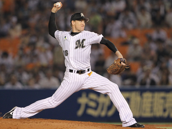 投手 ハウザー 8番 里崎 三ゴ 内角のカットボールを打つもサードゴロ 1アウト |