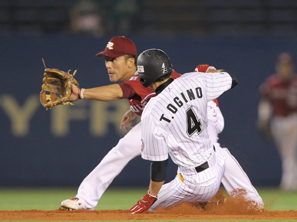 根元(二):送球ミス ロ1-3楽 2アウト1塁 |