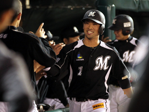 ロッテ先制! 楽0-1ロ 2アウト1塁 |