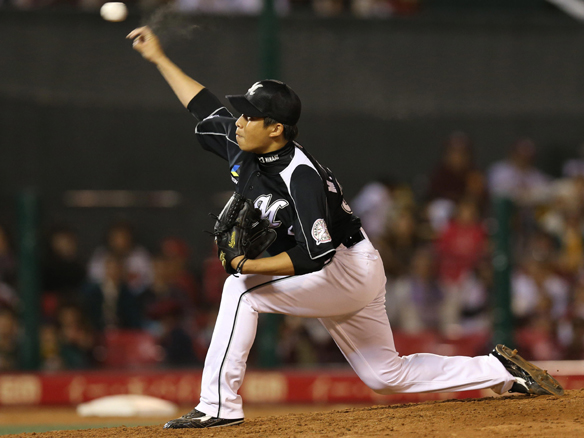 2番手として服部がマウンドに上がる