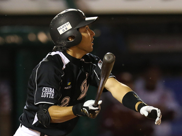 5番 サブロー 中安 ランナー1,2塁からセンターへのヒットを放つ 満塁 |