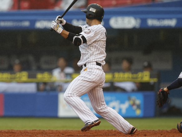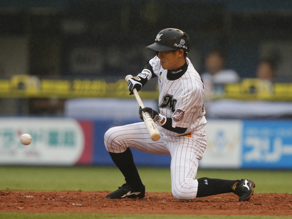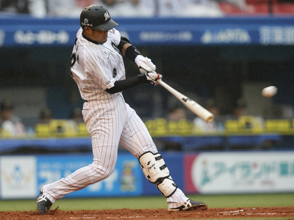 1番 根元 左安 ランナー2塁からレフトへのヒットを放つ 1,3塁 |