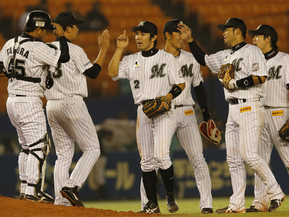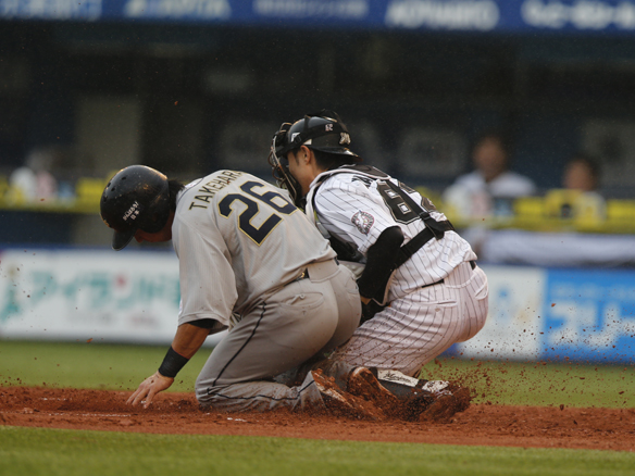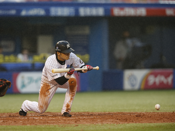 4番 今江 左安 ランナー1,3塁の0-1からレフトへのタイムリーヒットでロッテ先制! ロ1-0オ 1,2塁 ![]() 1