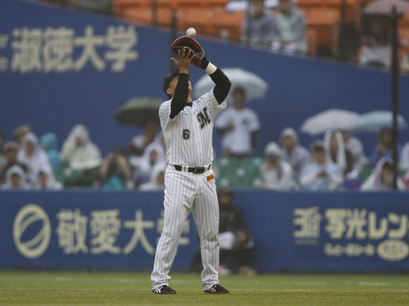 投手 南 3番 糸井 中飛 高めのストレートを打つもセンターフライ 1アウト |